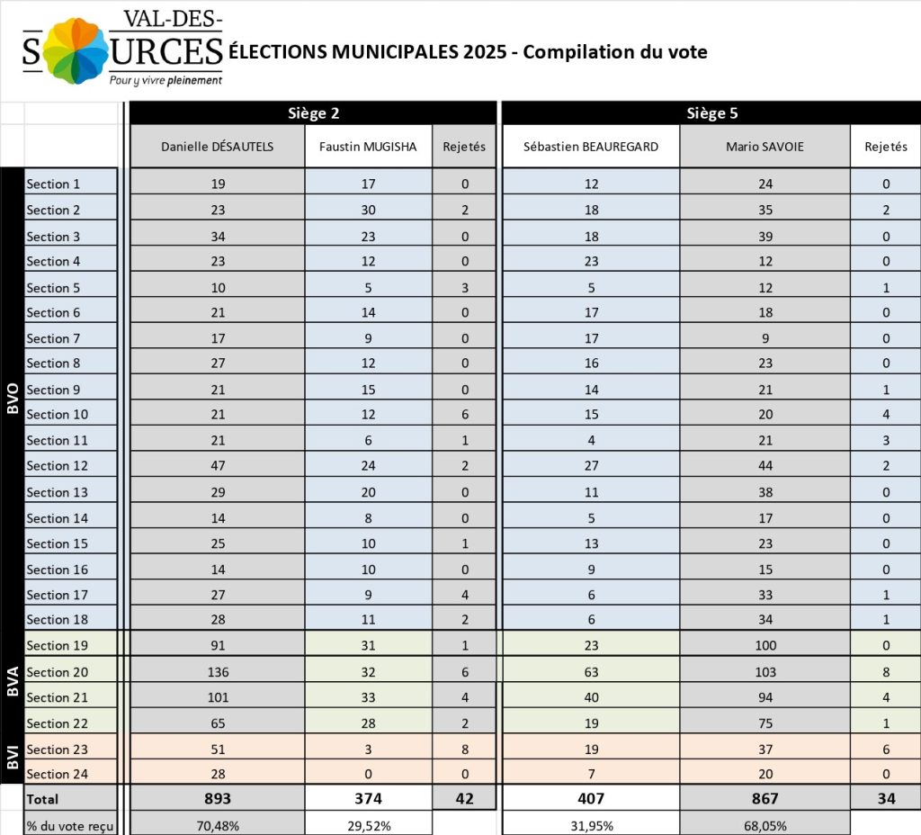 Vous recevrez votre avis électoral par la poste sous forme de lettre de la Ville de Val-des-Sources.