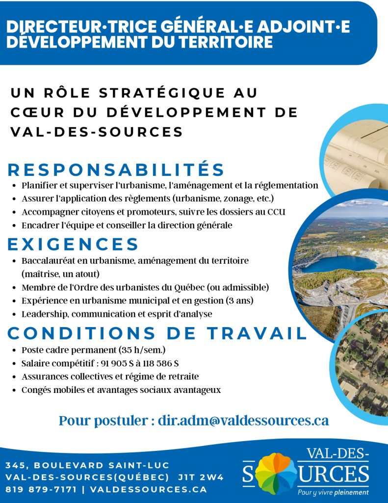 Nous vous invitons à transmettre votre demande de stage par courriel à adm.mun@valdessources.ca, en inscrivant dans l’objet : Demande de stage – domaine du stage (Exemple : Demande de stage – Loisirs.).