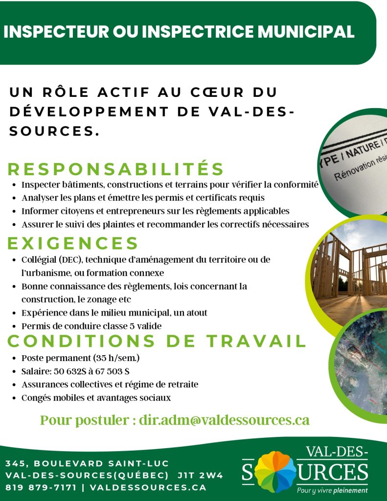 Nous vous invitons à transmettre votre demande de stage par courriel à adm.mun@valdessources.ca, en inscrivant dans l’objet : Demande de stage – domaine du stage (Exemple : Demande de stage – Loisirs.).