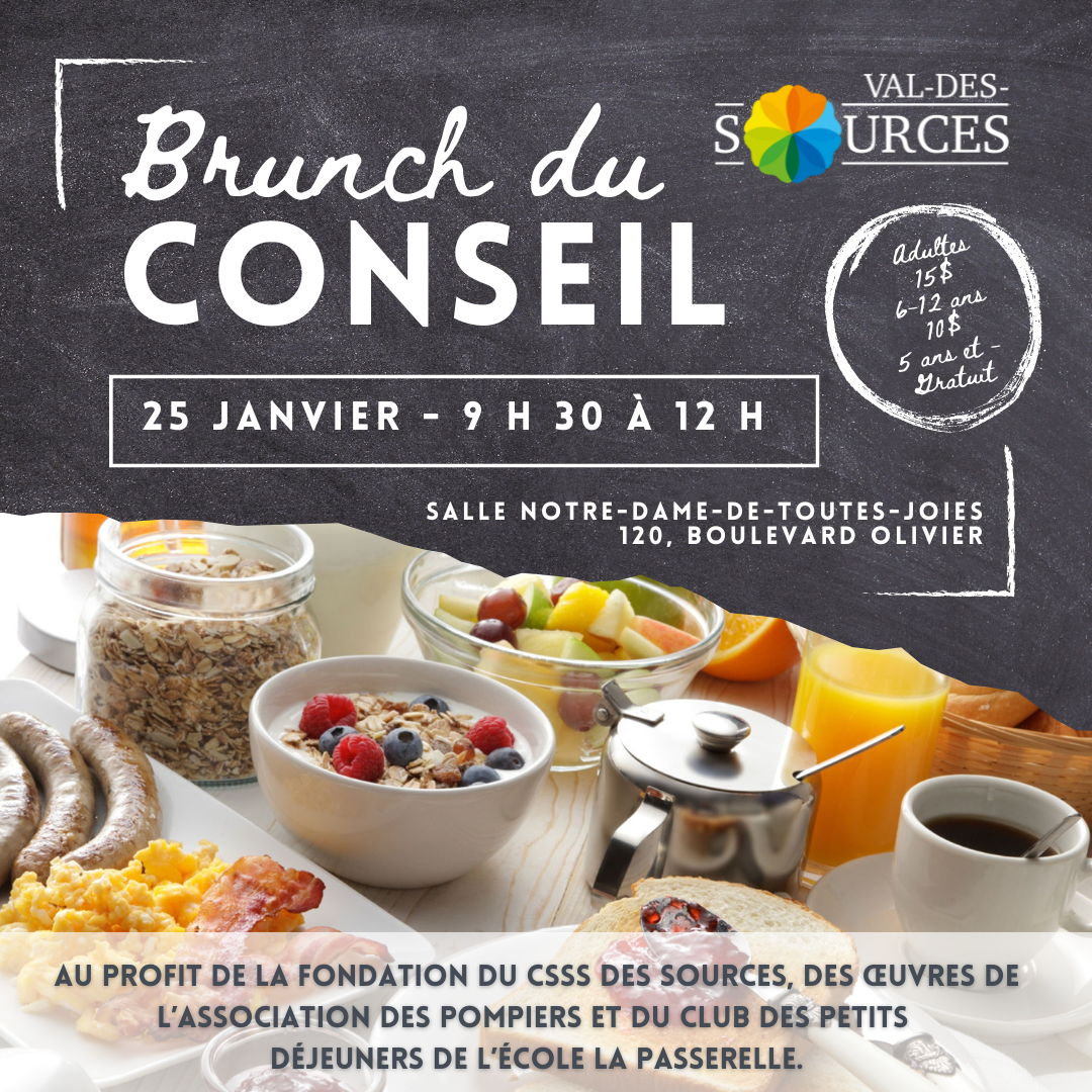 Venez bruncher pour une bonne cause! Tous les profits seront remis à la Fondation CSSS des Sources, au Club des petits déjeuners de la Passerelle et aux œuvres de la Fondation des pompiers. Aucune réservation n’est nécessaire, simplement à vous présenter sur place.